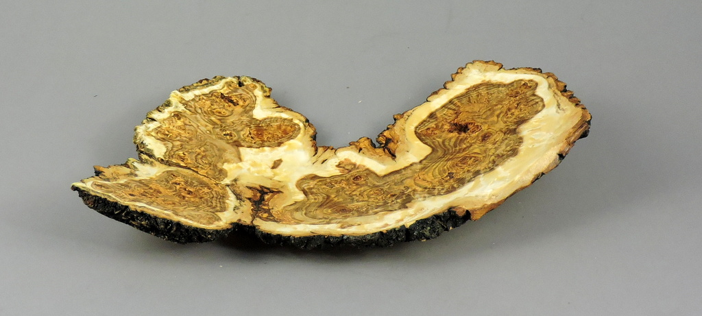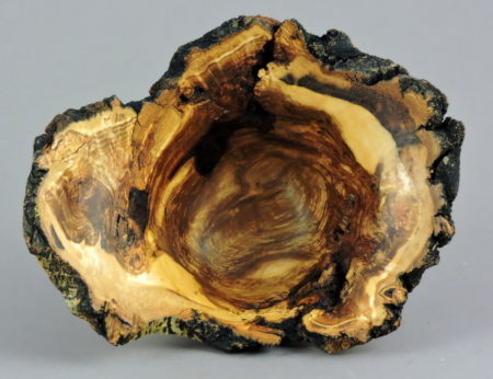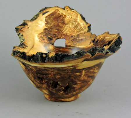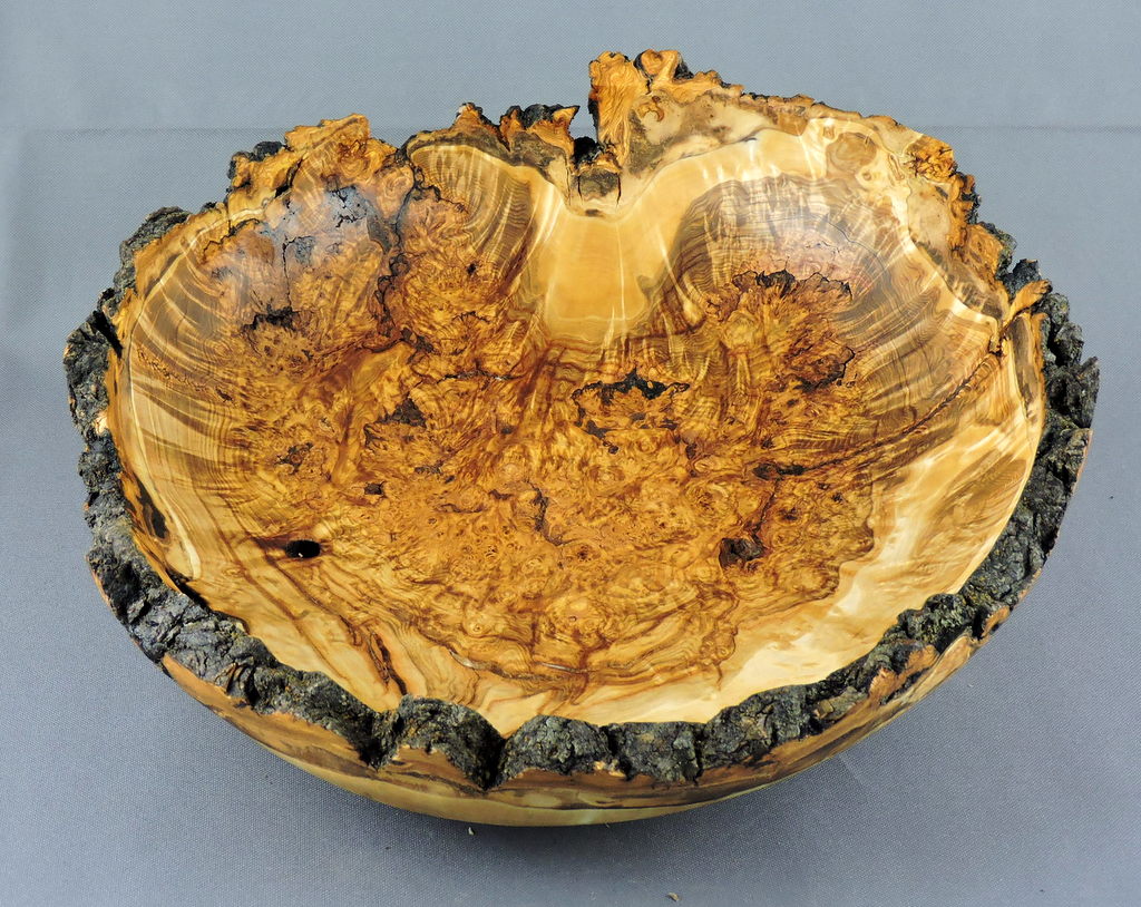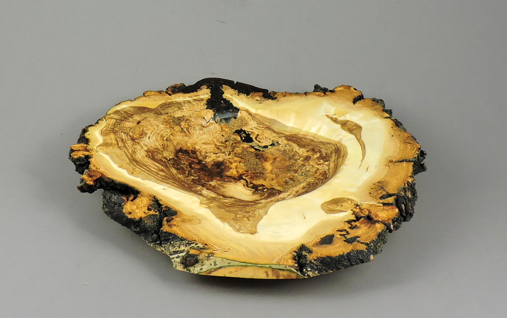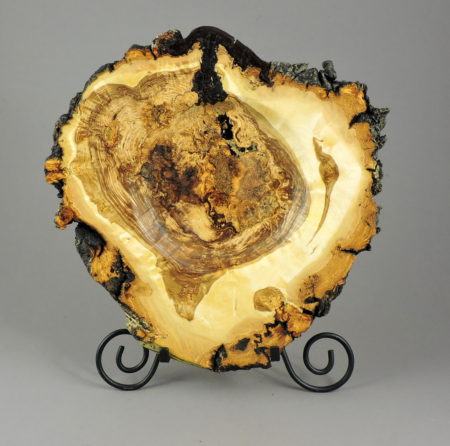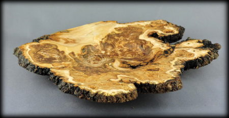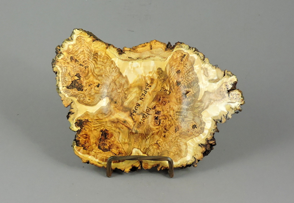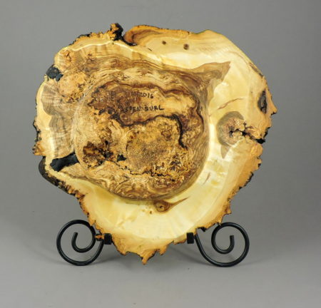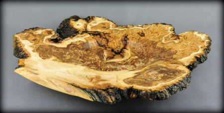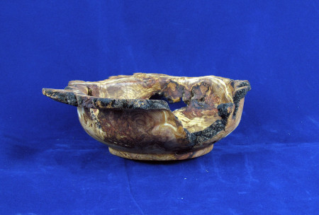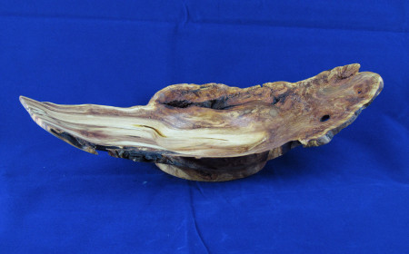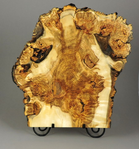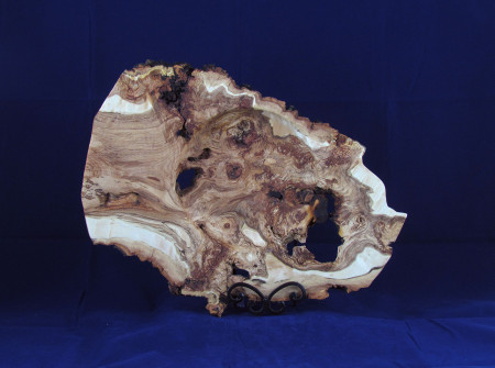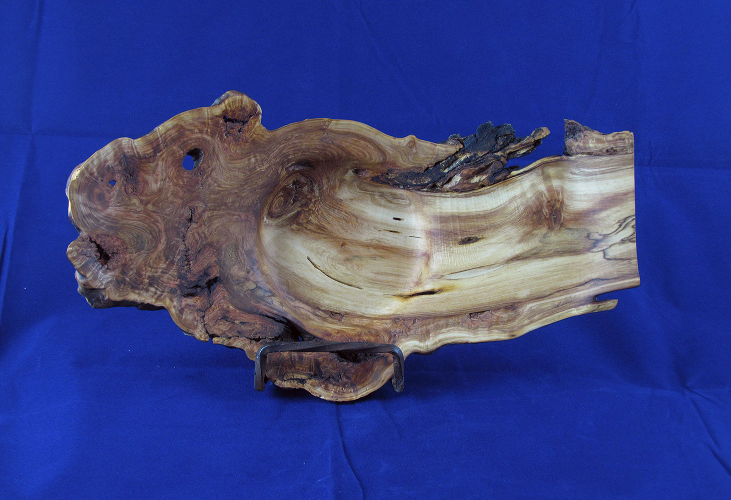item# AB1408 SOLD 13 1/8"x 7"x 3 1/8"h-5/16"wall thickness. Food safe finish, 100% Pure Tung Oil and beeswax $135.00 stand not included.