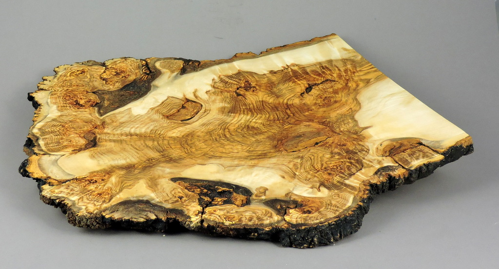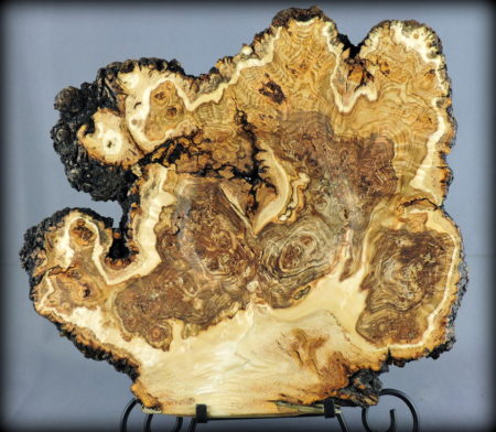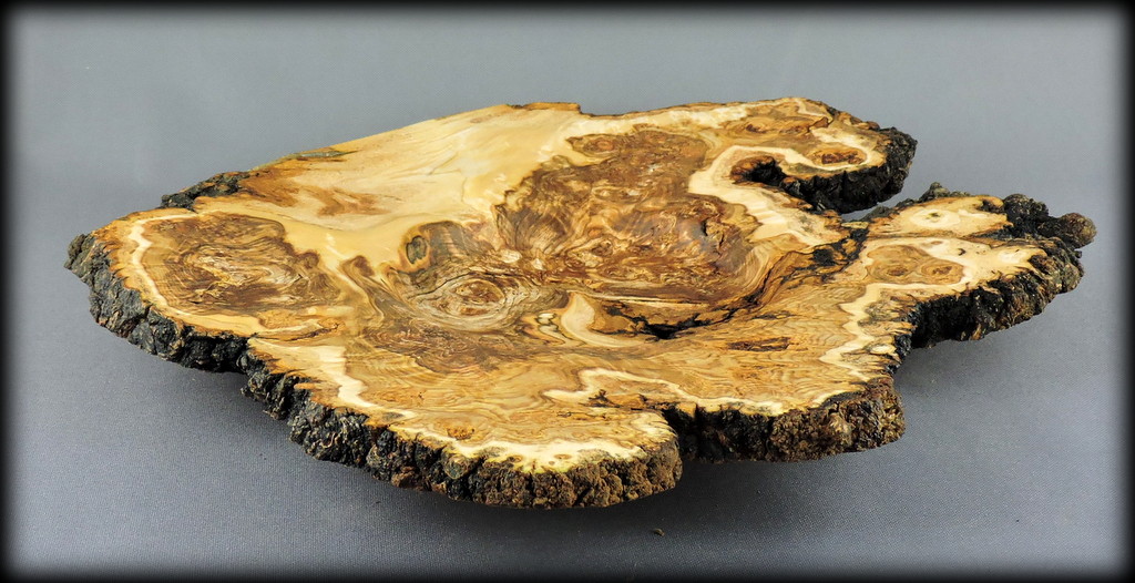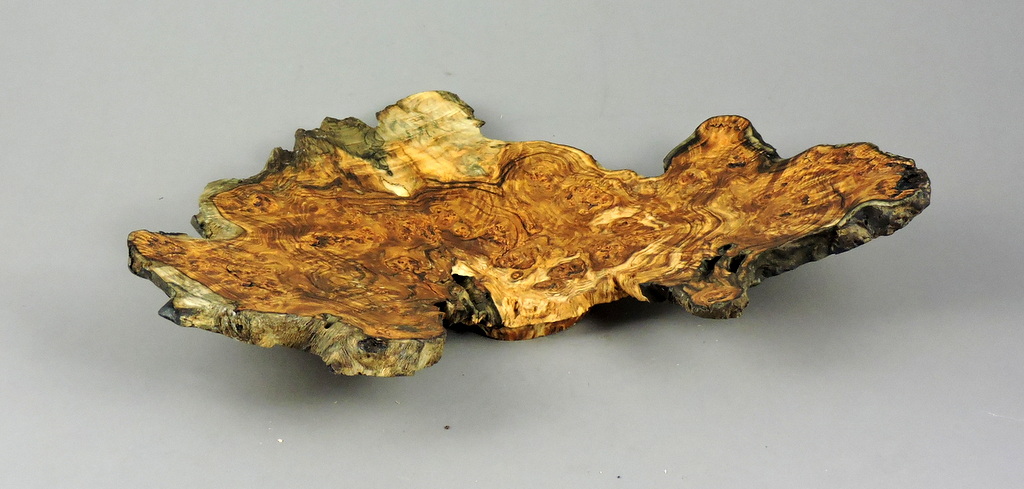 item# AB1408 SOLD 13 1/8"x 7"x 3 1/8"h-5/16"wall thickness. Food safe finish, 100% Pure Tung Oil and beeswax $135.00 stand not included. .